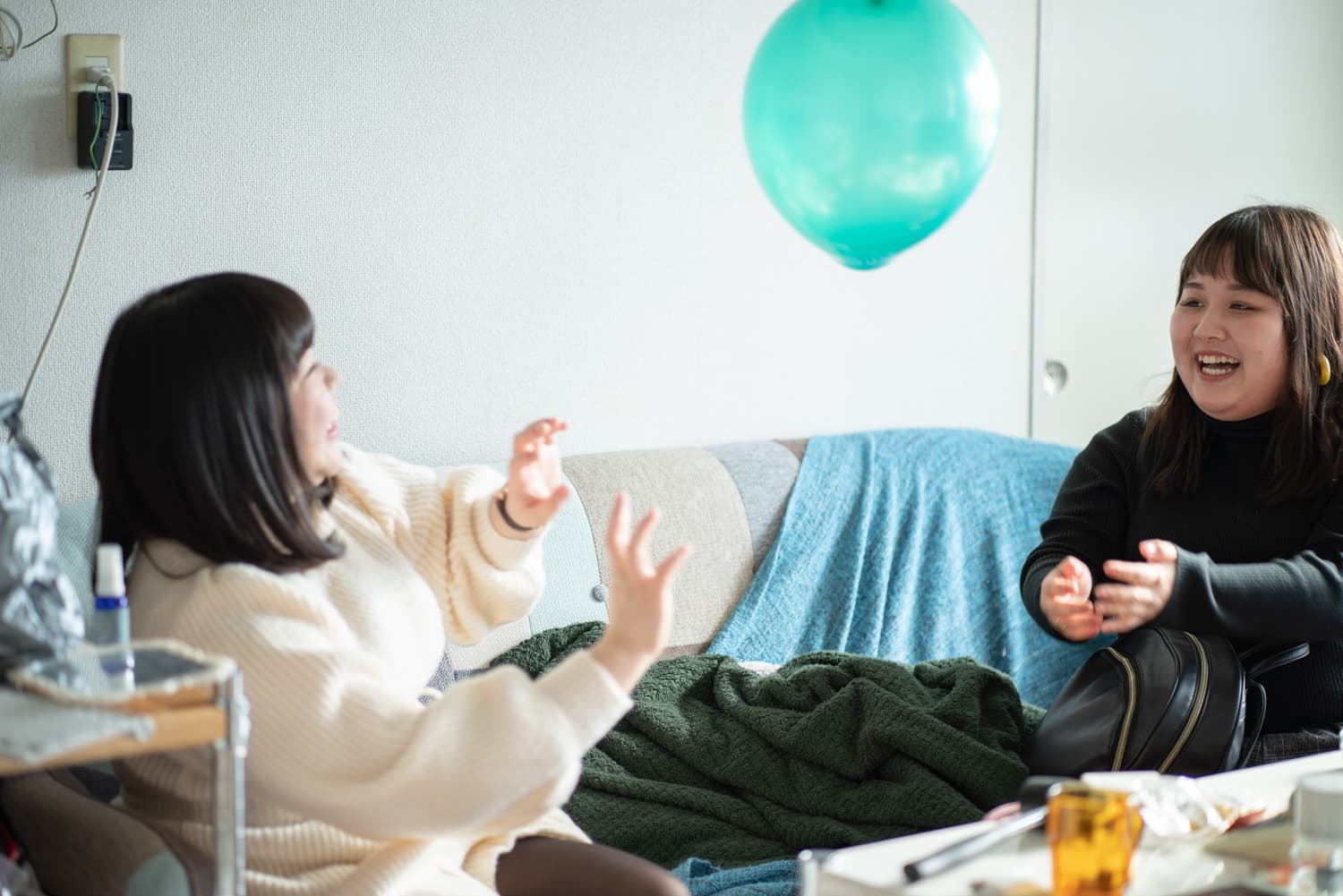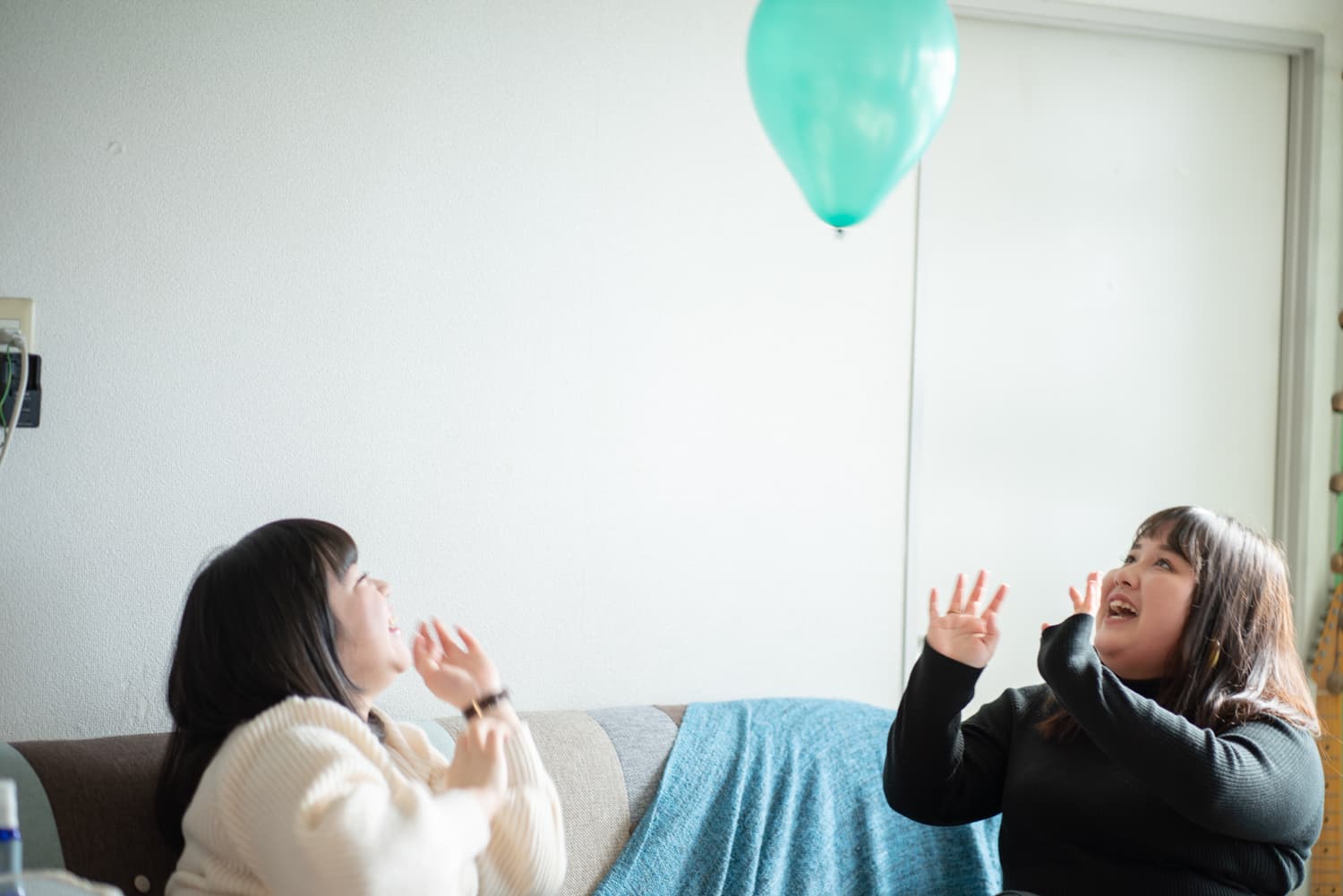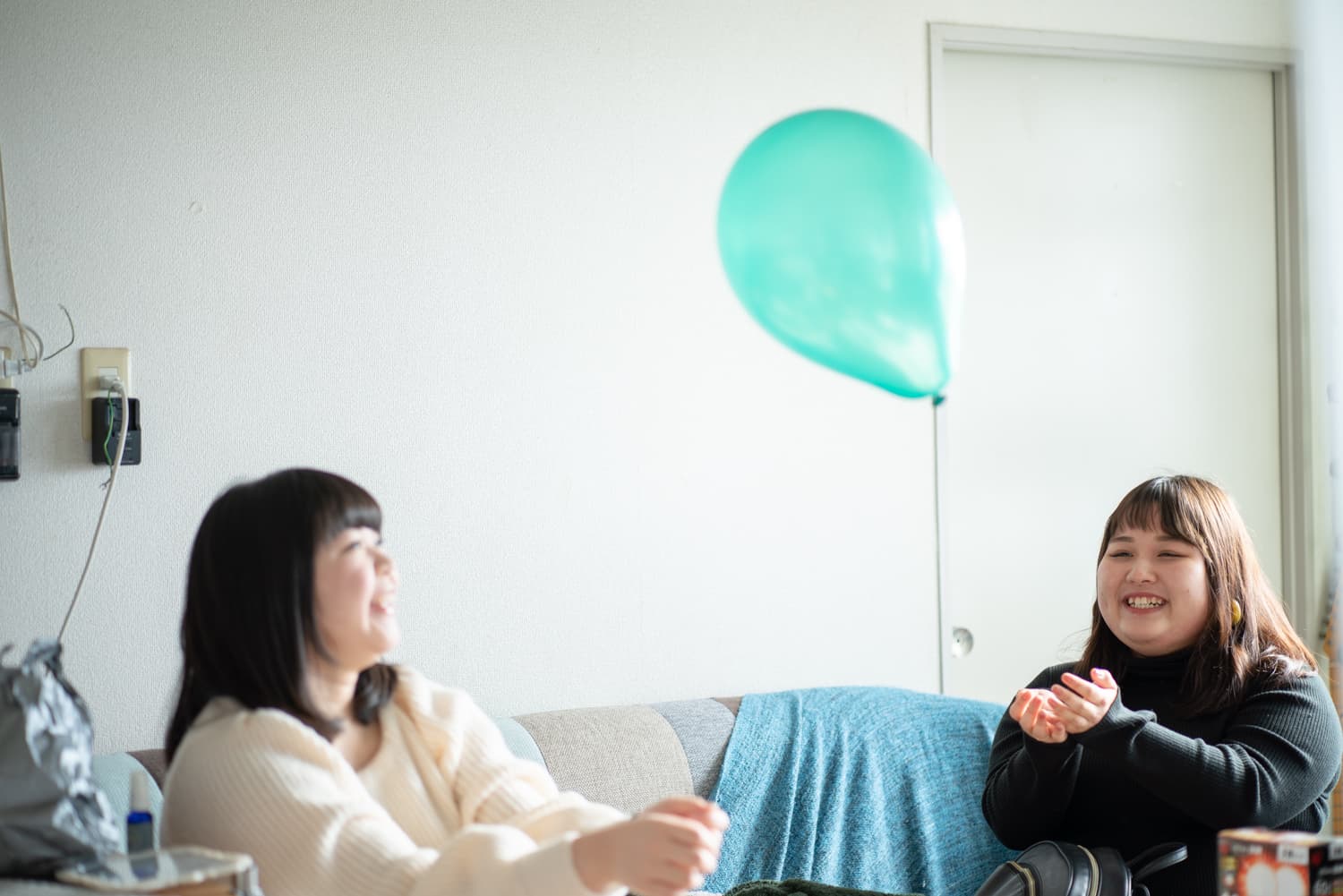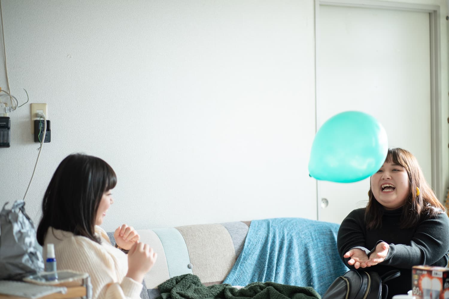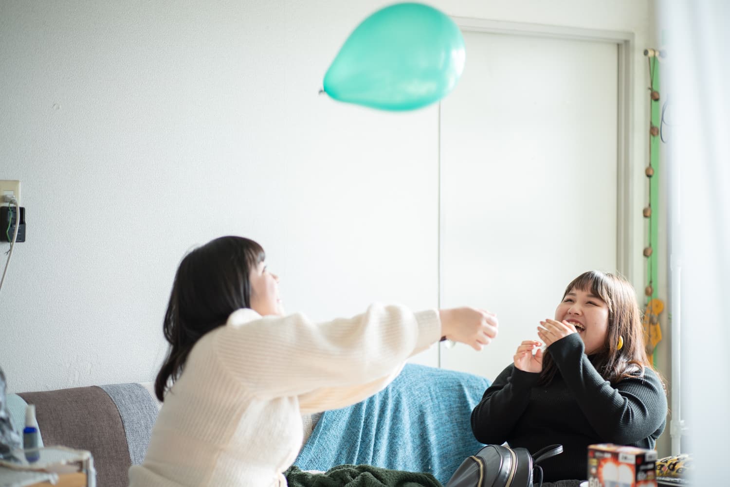 Hikariちゃんが膨らませた風船でバレーボールをしたり、二人が