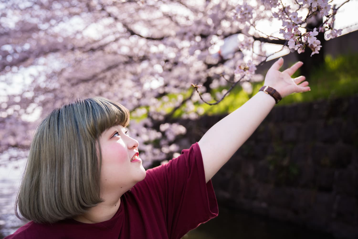 桜の近くまで寄って、寄りすぎて木にぶつかっちゃったり洋服や顔に花粉が付いちゃったり。