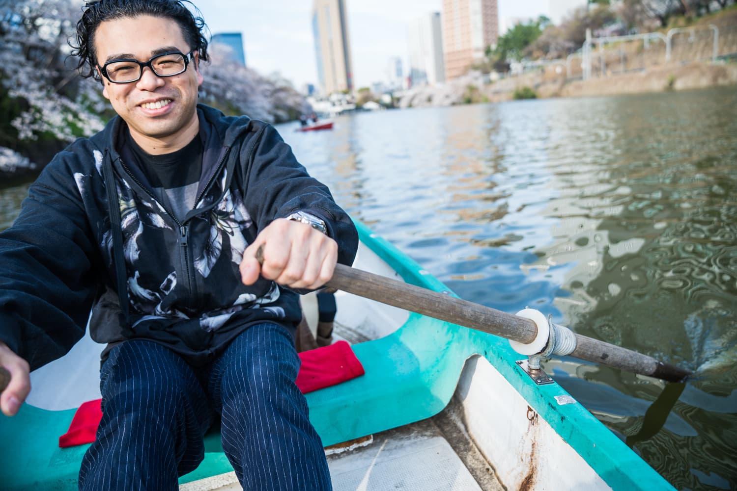 ですが、僕はボートに乗るのが好きなので、これも良い機会だと思ってyurinaちゃんと一緒にお堀にボートに乗りに行きました。
